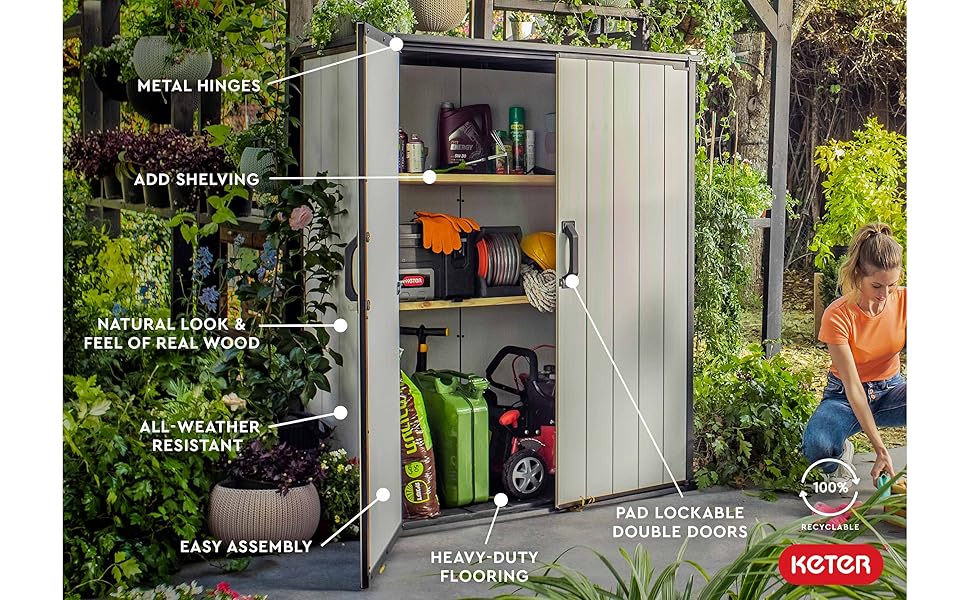 Weather-resistant polypropylene resin construction prevents rusting. peeling. fading. and denting - unlike real wood. Made with 100% recyclable materials. at Keter. sustainable and durable solutions are at the core of what we do.